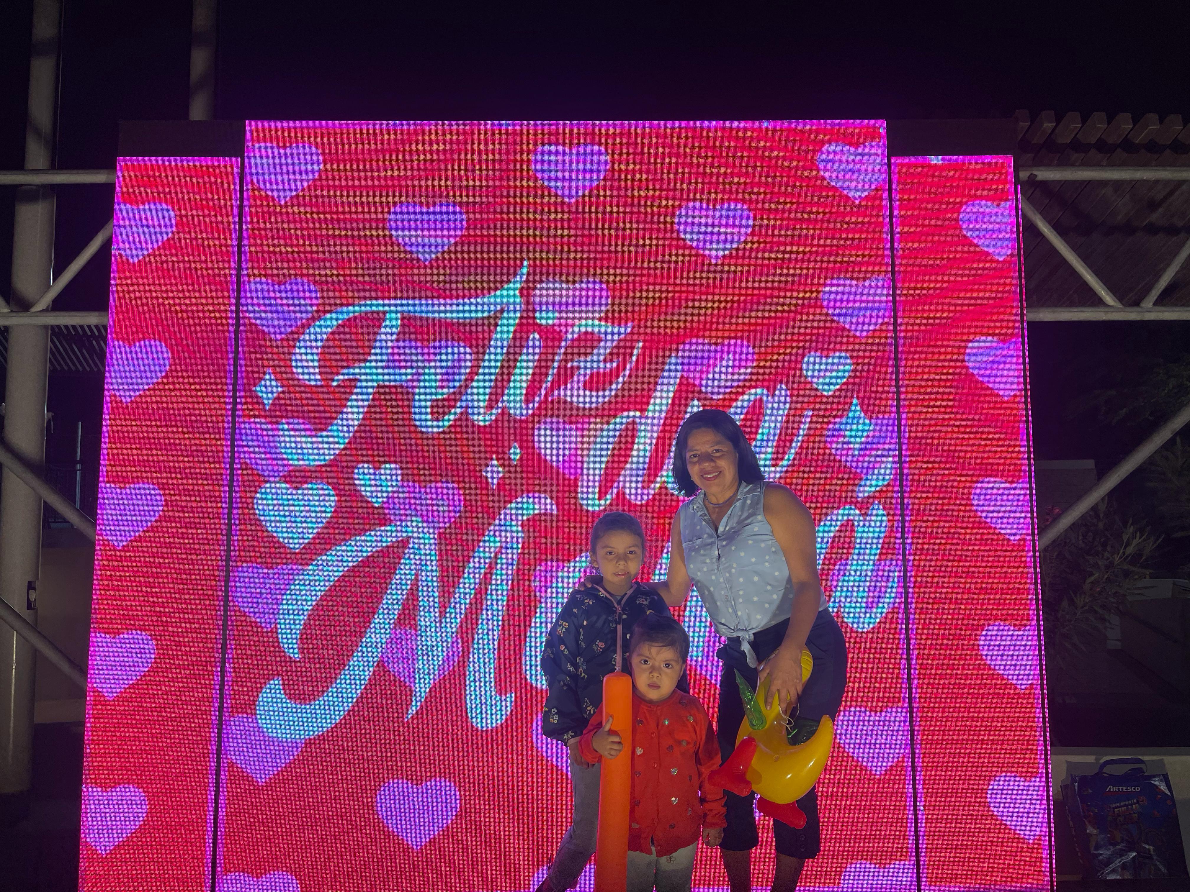 La Municipalidad de Piura aportó al ambiente festivo con la instalación de una pantalla en el parque, que fue punto de encuentro para fotos y recuerdos en torno a este ser tan querido que celebraría su día al día siguiente.