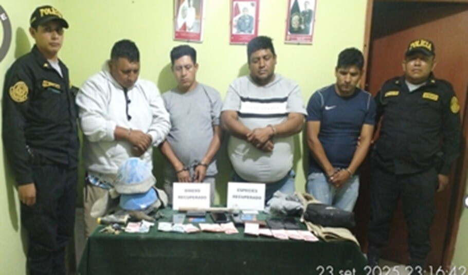 Los detenidos fueron identificados como Jhon William Q.V. (44), natural de Cajamarca, y los chiclayanos Martín Eulalio M.M. (33), Wilson F.C. (43) y Jaime R.H. (42). Dos de ellos se hicieron pasar por trabajadores del programa social Foncodes, logrando ingresar a la vivienda de la víctima, donde sustrajeron el dinero que guardaba en su dormitorio, para luego huir en un vehículo en el que los esperaba un “campana” y el conductor.