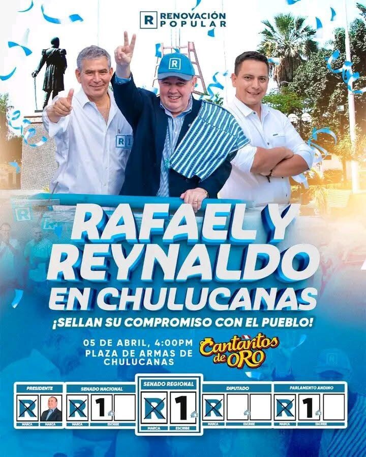 Chulucanas se alista para recibir al líder de Renovación Popular, Rafael López Aliaga, quien llegará junto al Ing. Reynaldo Hilbck en una jornada que ha generado gran expectativa entre la población.